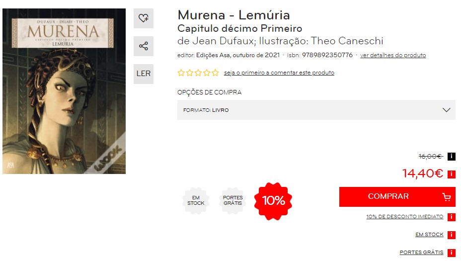 Com este décimo primeiro volume de Murena, a Asa consegue assim apanhar as edições originais ficando a par com o que já saiu até agora. Mais um lançamento de BD da editora da Leya.