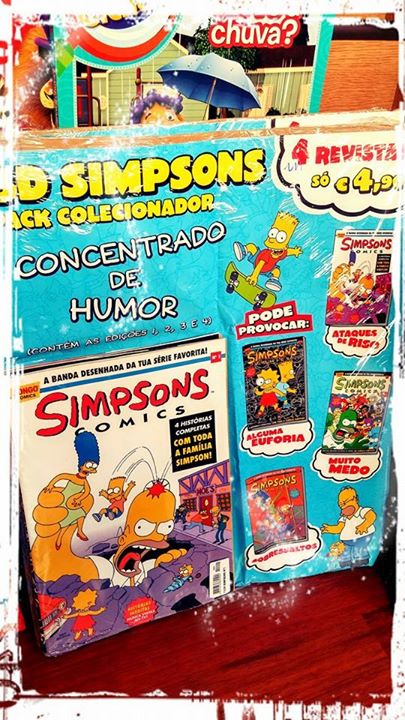 Entretanto apareceu algo que me alarmou ainda mais. O Pack das 4 primeiras revistas por apenas 4,99€! Toda a gente a sabe que se quando começam com estas promoções, é porque as coisas vão mal! Penso que este produto foi colocado à venda em meados de Fevereiro, mas poderá ter sido antes. No entanto, o pack continua espalhado por todo o lado, como poderão ver na foto aqui ao lado, retirado da página de Facebook Os Simpsons – Portugal.