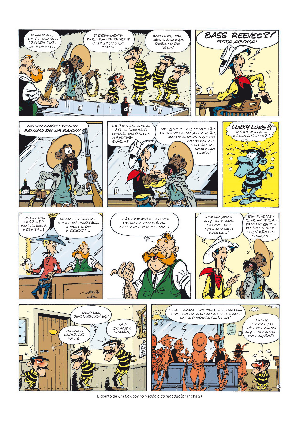 Depois, cada leitor terá um álbum preferido e uma resposta diferente a essa pergunta. Se eu analisar aquilo que mais me agrada nesta série, para além dos fabulosamente tontos e malvados Dalton, será por um lado quando ela encontra a história e a geografia dos Estados Unidos e, por outro, quando algumas personagens fortes fazem frente a Lucky Luke. Sob este ponto de vista, Um Cowboy no Negócio do Algodão satisfaz as minhas expetativas, uma vez que aí descobrimos a Luisiana e os seus tristes costumes, e a personagem de Bass Reeves. Este álbum é diferente a vários títulos, já que assenta na tradição da série mas aborda um tema inédito, que infelizmente muito tem a ver com a atualidade recente.